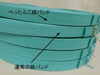【ぺったんこ厚薄差ご説明】 ぺったんこ紙バンドは、加工が難しい為・ロット・左右端・で厚みが違います。例えば0.1mmの厚み差は、49m巻き姿では計算上20mmの直径差です。しかしぺったんこ紙バンドに適した「網代編み・鉄線編み」の様な編み方で2〜4本に割いて使う場合、微妙な厚み差による影響は少ないと考えています。
